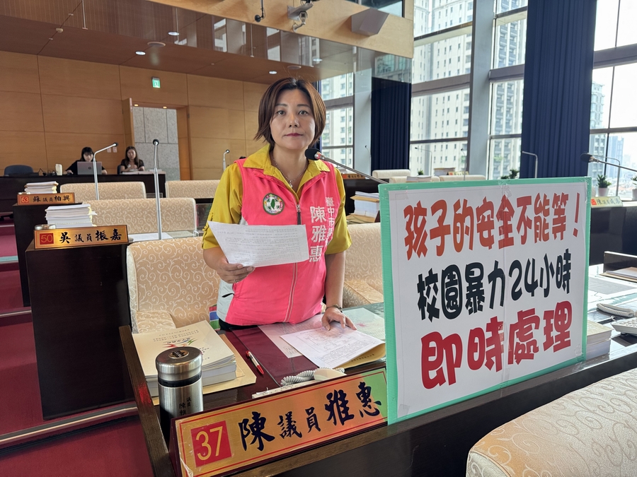 【記者官達里/台中報導】台中市近三年校園暴力通報每年均逾200件,今年截至9月已達183件。市議員陳雅惠在議會表示,教育局雖訂有完整處理流程,但實際執行卻過於冗長,孩子受傷還要等學校層層會議紀錄,讓家長憂心「孩子安全根本等不起」。