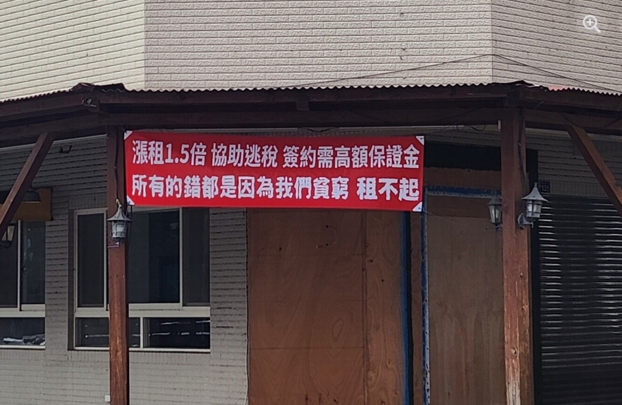 無獨有偶,鄰近逢甲商圈智惠街的一間經營五年的髮廊,近日也突然搬走,並在店面掛上紅布條,控訴房東「漲租1.5倍,協助逃稅,簽約需要高額保證金」。知情人士透露,房東將原本月租8萬突然喊漲到12萬元,若要維持9萬租金,則要求租客找人頭分層簽約並支付30萬元保證金,讓業者不堪負荷。這些「無聲的抗議」如同警訊,揭示了逢甲商圈店家與房東間日益尖銳的矛盾。