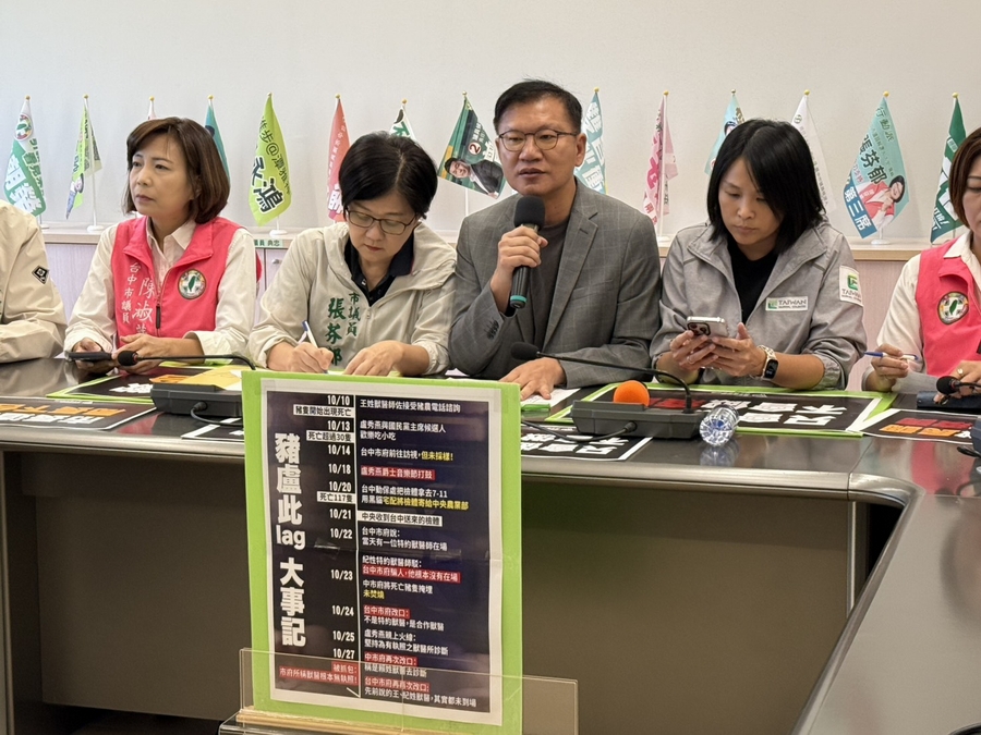 【記者官達里/台中報導】台中市議會民進黨團於今(29)日召開記者會,針對梧棲區養豬場非洲豬瘟疫情案,痛批市府在疫調過程中說法反覆、資訊混亂。中央多次要求補送完整報告,但台中市政府的回應卻屢次更動,從通報人、獸醫師、死亡數據到採檢過程,有多種版本。面對連日錯誤與推諉,民進黨團要求,相關局長下台負責,市長盧秀燕應公開向市民道歉、承擔責任。