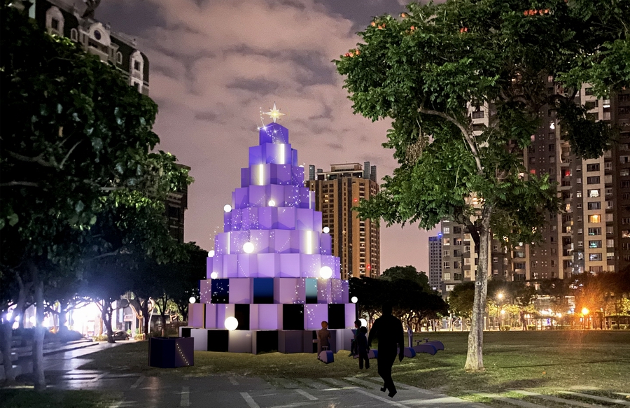「台中好聖誕」已邁入第六屆,每年以不同主題將節慶的幸福能量散播至城市各角落,今年並以「讓愛走動 Together」為主題,邀請市民以行動點亮城市,讓愛流動、幸福延續,現場更設置9米高夢幻主燈「聚.光 | Gather the Light」,以溫暖光影與柔霧紫為主色,搭配閃爍燈效與幾何堆疊結構,展現濃厚的現代藝術風格,現場更設置5台腳踏車發電裝置,民眾騎乘後可提升主燈亮度並播放祝福音樂,象徵「行動中的愛」,為城市注入更多溫暖與希望。