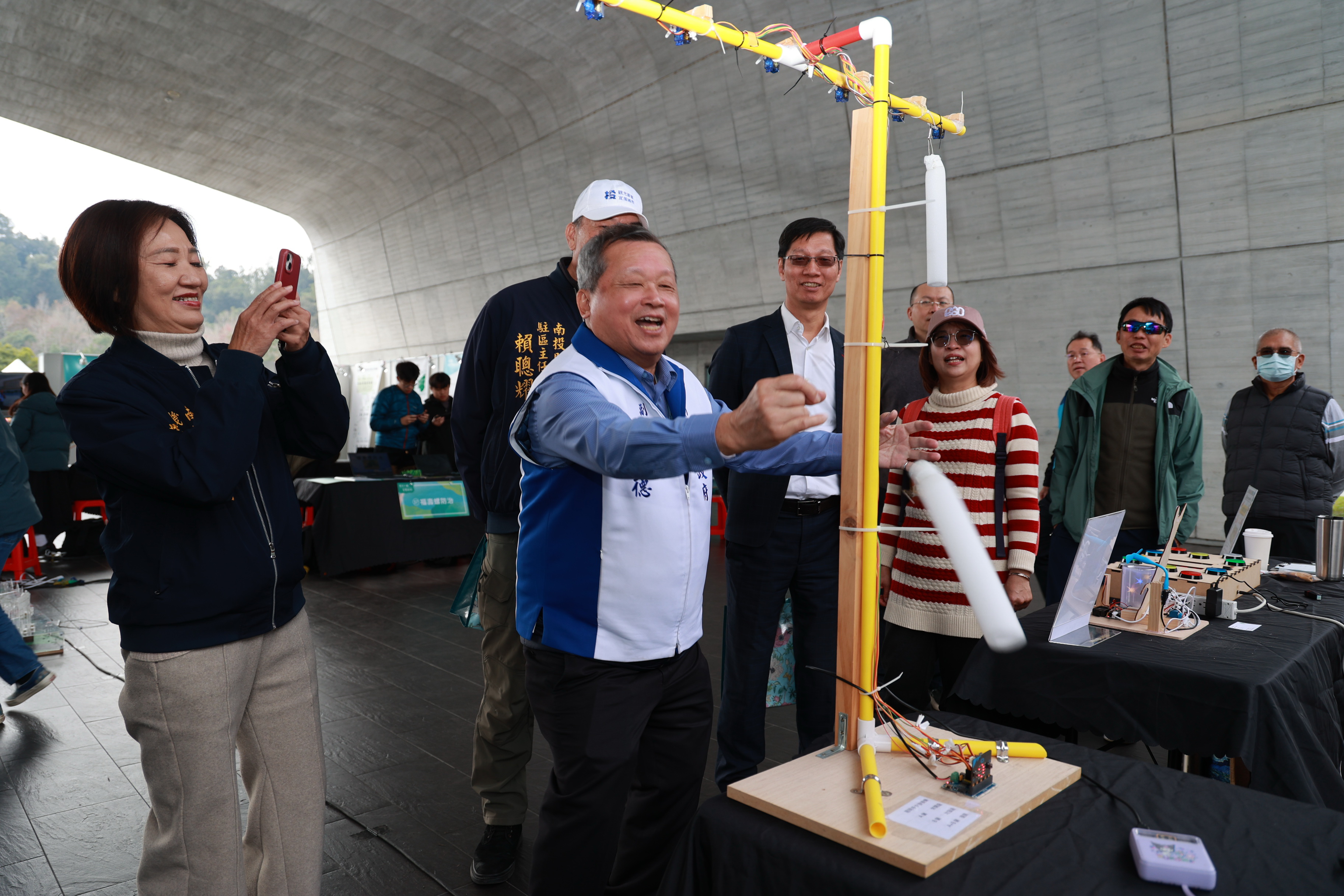 此外,現場設置「清水模智慧講堂」,透過五感體驗引導民眾覺察日月潭自然與人文共融之美;「低碳小旅行」則安排水上自行車道騎行,並結合實境解謎走讀在地故事,實踐綠色學習理念。