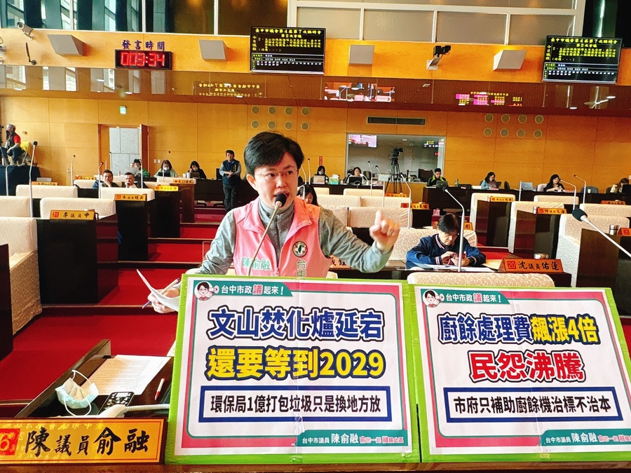 陳俞融提到,盧市府廚餘去化仰賴焚化,卻未提前規劃多元管道,導致市場漲價、民怨沸騰。明明外埔園區一期本是前市長林佳龍任內的綠能示範,採用厭氧發電技術,每年處理2.7萬噸生廚餘。但盧市府逢龍必反,二期熟廚餘處理設施延宕6年,委外廠商去年9月和10月兩度提交報告,市府卻評估「財務不平衡、不適合投資」,導致計畫卡關。