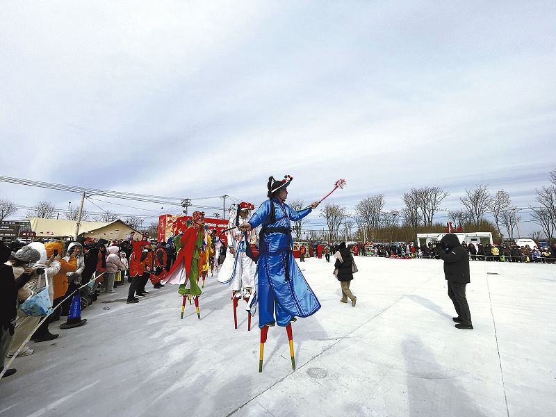 月初的永樂店大集人聲鼎沸。鑼聲一響,永樂店鎮後馬坊武蹺會登場,16名隊員雖然腳踩約60厘米高的木蹺,行走卻如履平地,隨著節奏起落,時而彈跳旋轉,時而跨步小跑,表演的一招一式乾淨利落。現場「駝象」「鯉魚打挺」等高難度動作接連上演,引得圍觀村民陣陣喝彩。