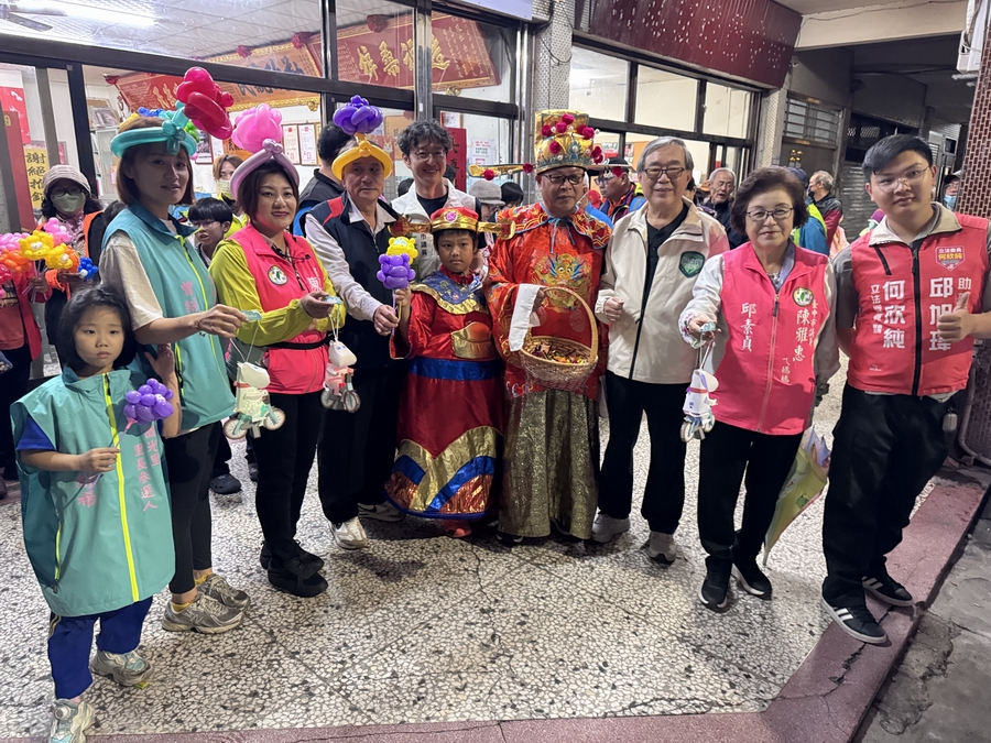踩街隊伍晚間7點於正義街236號前集結出發,沿仁和路、國光路、建成路及正義街、瑞豐街一帶穿梭社區巷弄。由「鼓車」與彩繪動漫人物的「痛車」領頭,車身燈光流轉、格外吸睛,另有兩位「財神爺」扮裝沿途發送糖果與造型氣球,隊伍所到之處歡呼聲不斷。福正宮管委會主委曾再富,市議員陳雅惠、江肇國,前議員邱素貞、立委何欣純團隊及國光里長參選人曾綵希等人也全程陪同行走,與里民並肩巡里祈福,氣氛熱絡、溫馨。