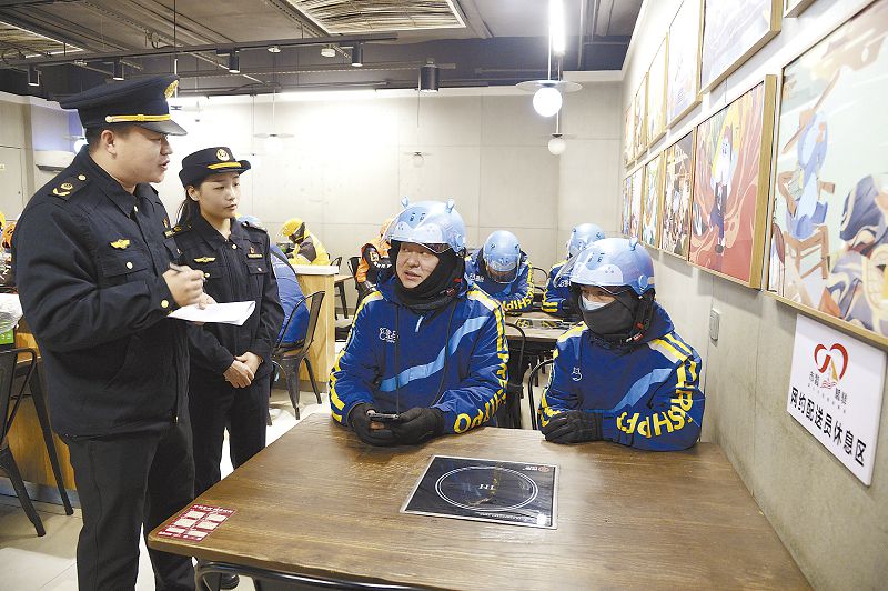 針對不同時節,驛站還提供不同的服務。事先向外賣騎手等網絡配送員徵集意見、建議和需求後,通州區正在探索建立「春送安康、夏送清涼、秋送呵護、冬送溫暖」的四季關懷服務體系。例如,冬季,為網約配送員送上防寒護膝、防寒把套、保暖圍脖、防寒面罩、暖寶寶、保溫杯等實用裝備;夏季則在福利禮包內配備防暑防蚊物品、一次性雨衣、防曬冰袖等物資。