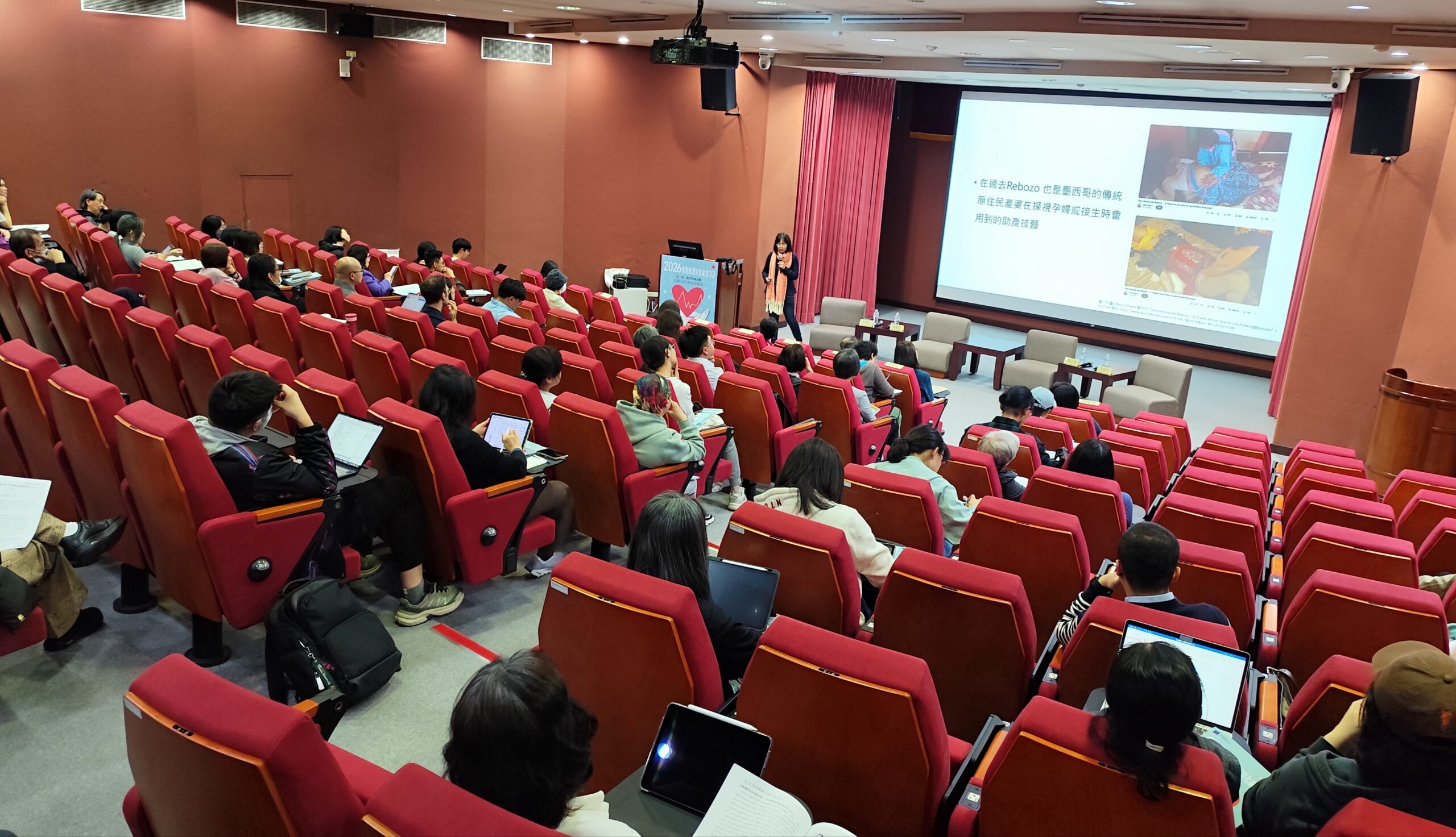 本次論壇安排三場專題演講,分別聚焦生命不同階段的照護實踐,就像三則動人的生命故事。第一場來到丹麥的產房:由台北醫學大學醫學人文研究所副教授施麗雯主講,施麗雯帶我們看見一條「墨西哥長巾(Rebozo)」的溫柔力量。這項源自傳統的孕產照護技術,在丹麥的現代醫療場域中被重新賦予生命,它不只是布巾,更是陪伴產婦度過艱難時刻的溫柔雙手。而且在丹麥,孕婦就診,大多數的醫師都會詢問,是否有先經過Rebozo的照護,可見Rebozo已經是丹麥助產醫療生產前的必要照護工具。