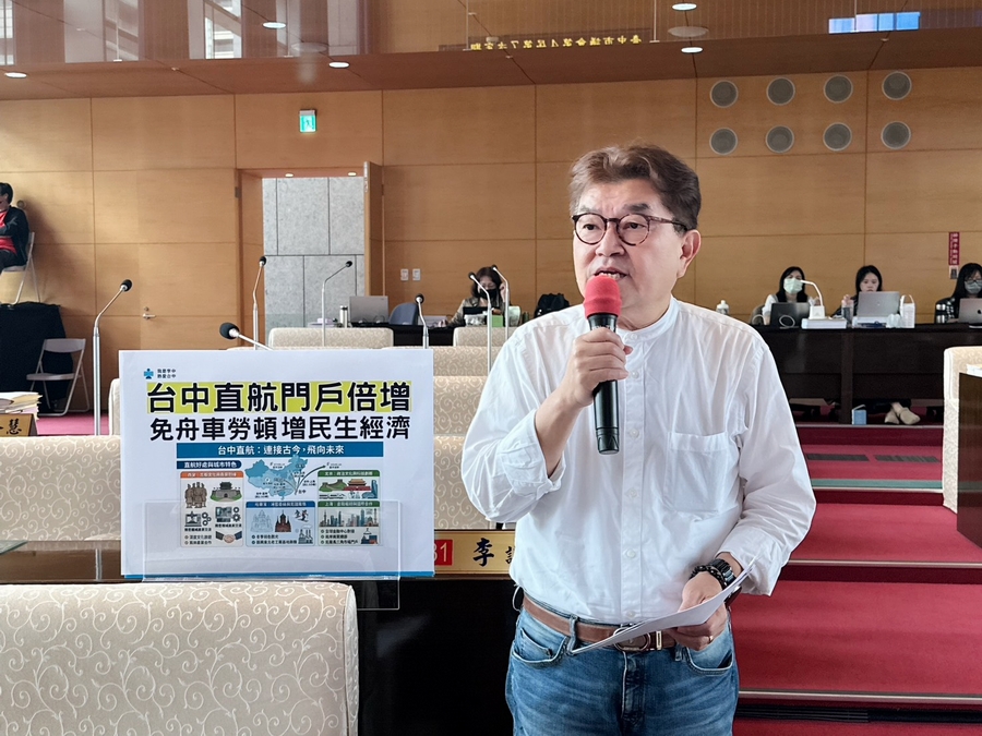 【記者官達里/台中報導】國民黨主席鄭麗文日前出訪中國後,大陸釋出惠台十大措施,其中一項就是開放上海、福建居民來台。台中市議員李中認為,台中市應積極爭取台中-上海航線復航,藉此發展中部地區觀光,並讓台商往返兩岸更便利,他要求市府主動爭取,對中部旅遊業幫助很大。