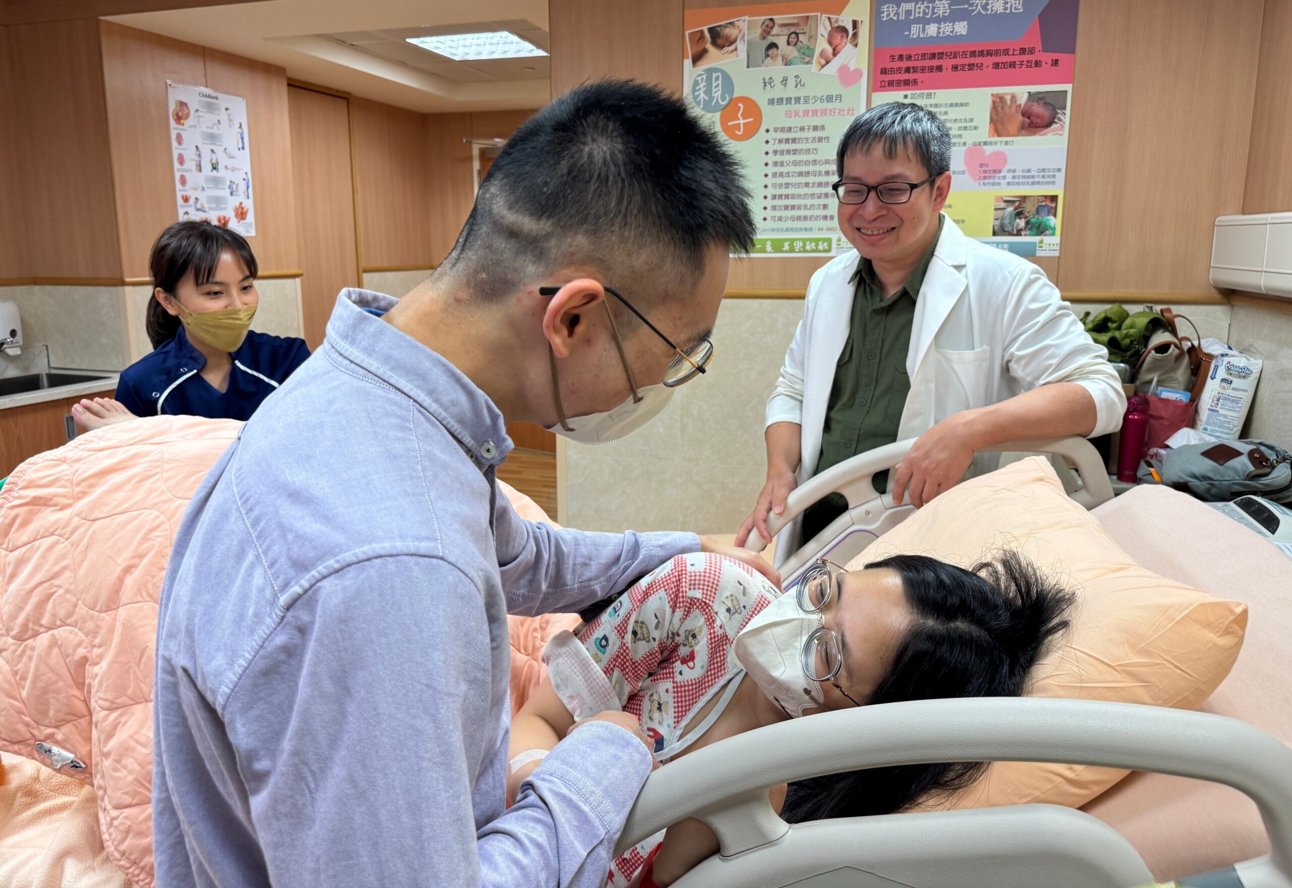 迎接第二胎的張小姐回憶,首次生產經驗讓他深感無助。當時未採減痛分娩,待產期間因胎心音監測器限制於病床,腰痠背痛卻無法活動;面對緊湊的醫療處置,護理人員多以指令方式快速應對,先生則因不明狀況只能在旁焦急守候,直到產後才參與母嬰同室與餵奶。為改善整體生產經驗,第二胎夫妻選擇於台中慈濟醫院採行溫柔生產。